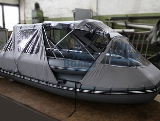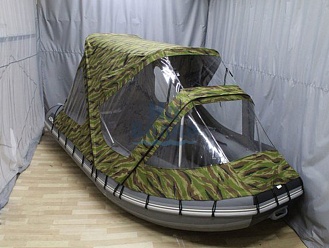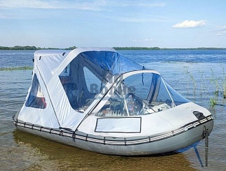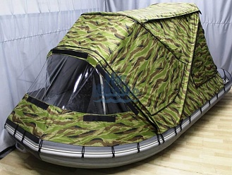 Тент представляет собой крышу (козырек) специального кроя, сшитый из прочной ткани и натягивающийся над кокпитом для защиты пассажиров и вещей в лодке от прямых солнечных лучей и дождя