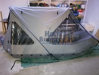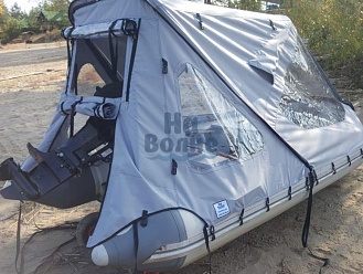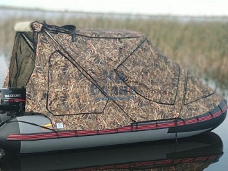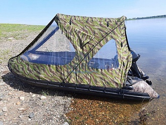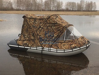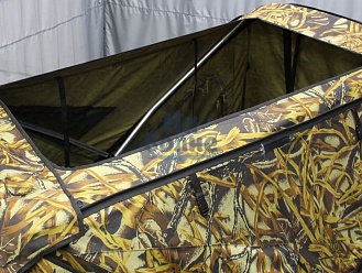 Полноценный ходовой тент на основе комбинированного тента и тента трансформера. Особенностью является наличие люка-бойницы в крыше для охоты из лодки