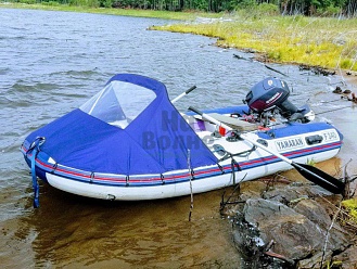 Усиленный носовой тент с дополнительной дугой - таргой, защитит вас, ваших пассажиров и вещи от брызг. Носовой тент и дуга для троллинга в одном комплекте